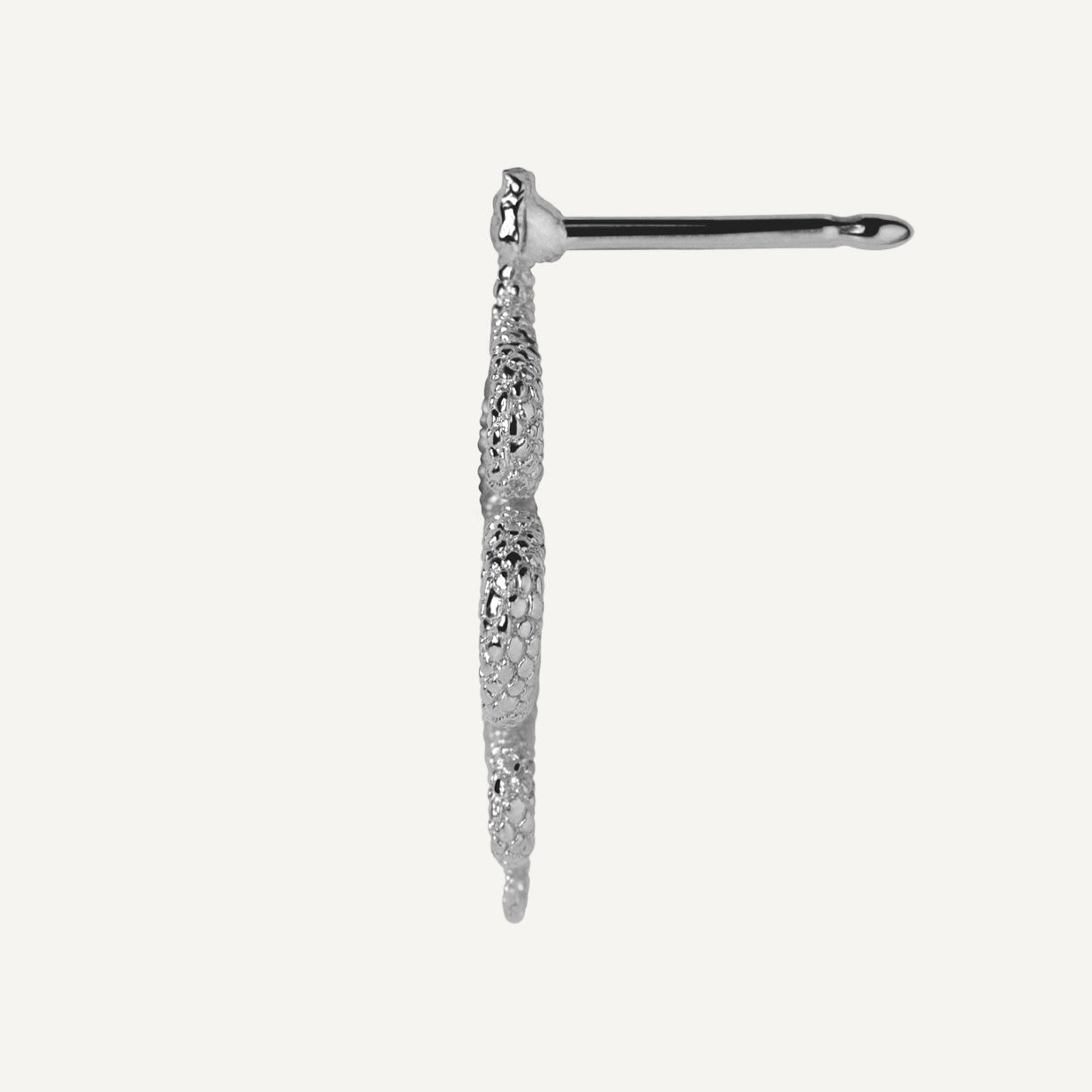 Pendientes Snake Silver es una pieza realizada a mano con métodos de joyería tradicional en latón, chapada en plata 925 con una capa protectora que extiende la durabilidad del chapado.